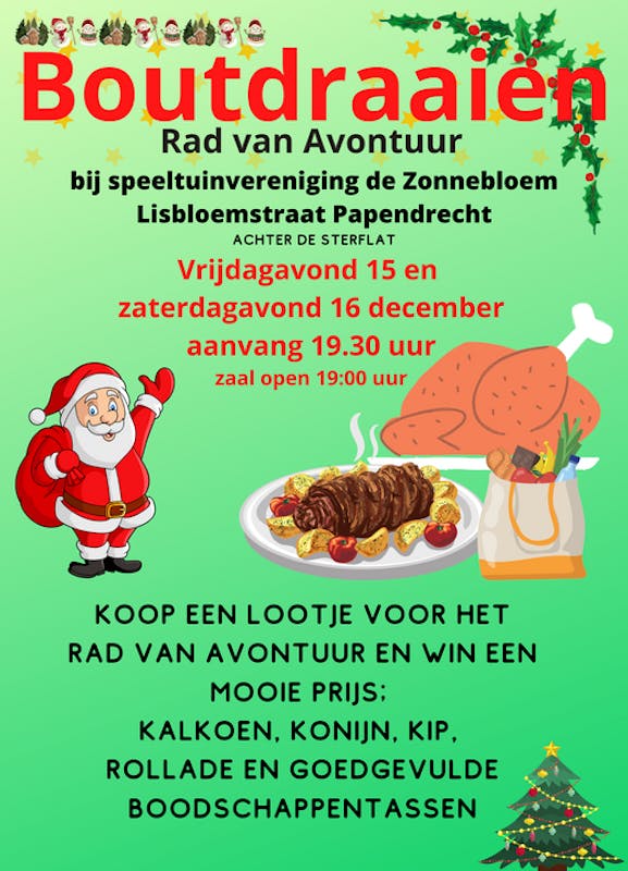 Koop een lootje voor het Rad van Avontuur en maak kans op mooie prijzen, zoals kalkoen, konijn, rollade of een mooie gevulde boodschappentas.