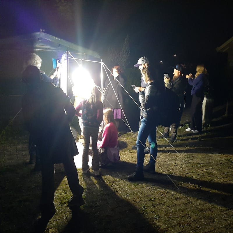 Wat vliegt er ‘s nachts in het donker zoal rond? Meer dan menigeen denkt. Het kan zichtbaar gemaakt worden door middel van nachtvlinderen. Met behulp van een wit laken en een speciale lamp worden nachtvlinders gelokt, die dan op het laken gaan zitten. Het is verrassend hoeveel er dat zijn en hoe mooi getekend ze vaak zijn.