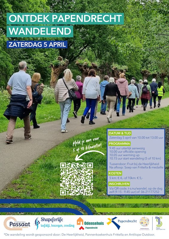 Dit jaar organiseren diverse organisaties, onder andere vanuit het Vitaliteitsakkoord Papendrecht, een inspirerende wandeldag om gezondheid, beweging en ontmoeting te versterken. Op zaterdag 5 april voor alle inwoners een gezellige en sportieve dag, met wandelroutes van 5 km en 10 km. Zowel beginnende als ervaren wandelaars, jong en oud(er) kunnen meedoen.