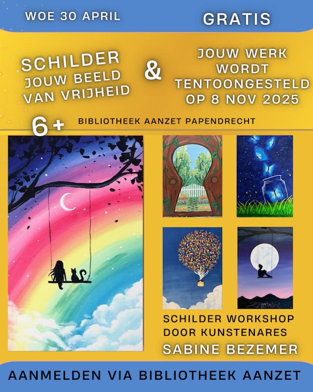 Wat betekent vrijheid voor jou en hoe zou je dat schilderen? Je wordt persoonlijk begeleid door kunstenares Sabine Bezemer.