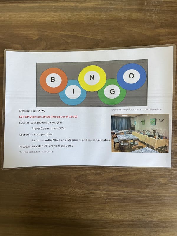 Inloop vanaf 18.30 de balletjes gaan om 19.00 uur rollen.