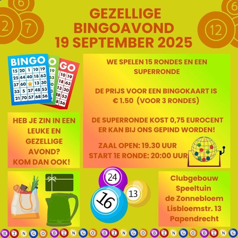 Op vrijdag 19 september organiseert Speeltuin De Zonnebloem weer een gezellige bingoavond in het verenigingsgebouw aan de Lisbloemstraat in Papendrecht. Het is de eerste bingoavond na de zomervakantie.