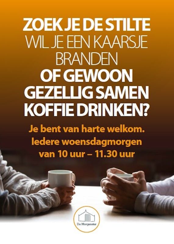 Tijdens de koffieochtend op woensdag kunt u in de kerkzaal stilte zoeken, een kaarsje aansteken, de bijbel lezen of gebedsintenties opschrijven.