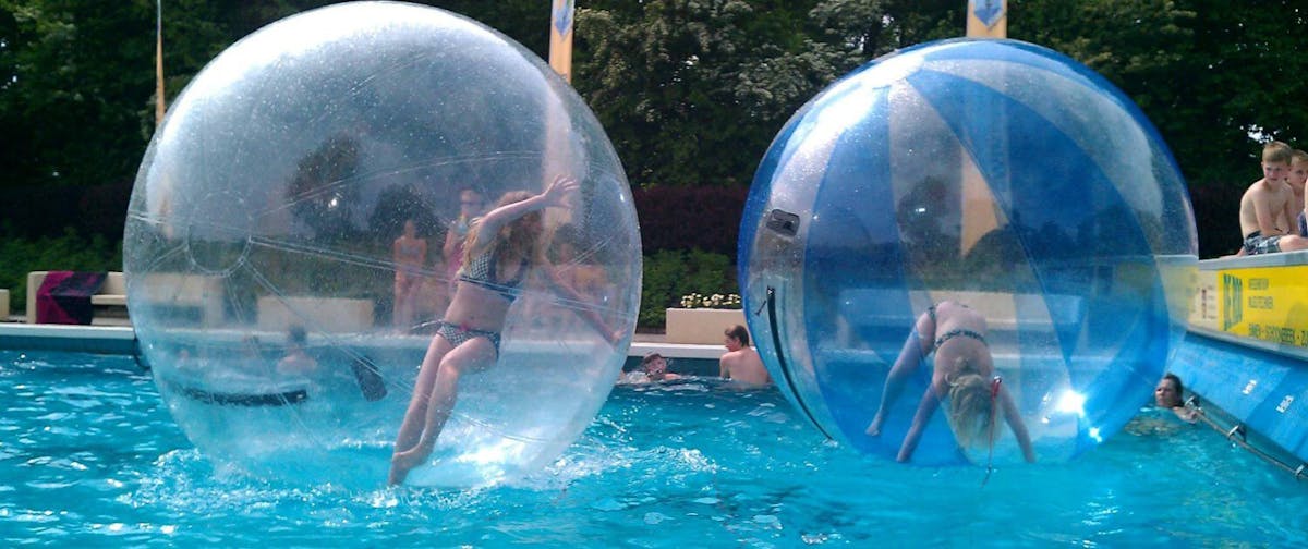Aquabubble, als een hamster rennen in een bol. Het is misschien wel de leukste attractie voor op het water. Het is bijzonder leuk om te proberen en natuurlijk ook heel leuk om te zien. Het is een transparante bal om op het water te drijven. Via een opening kun je in de waterbal stappen waarna deze wordt afgesloten middels een duikersrits. Deze rits is waterdicht, waardoor je droog blijft tijdens het lopen over water.