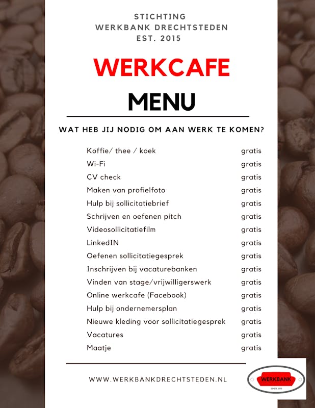 MOMENTEEL IS DE WERKBANK GESLOTEN! DE MOGELIJKHEDEN VAN EEN DOORSTART WORDEN ONDERZOCHTDe Werkbank is een stichting door en voor werkzoek......