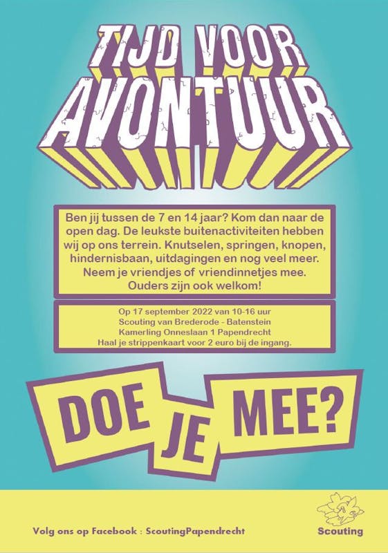 Scouting staat voor uitdaging! Als je 7 jaar of ouder bent kun je lid worden van onze Scoutinggroep. Je zit samen met leeftijdsgenoten in......