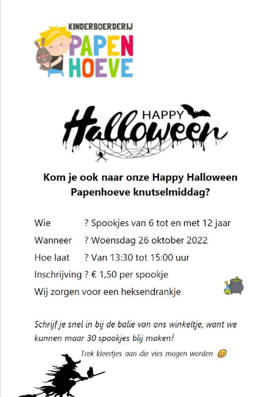 kom je ook ook naar onze Happy Halloween Papenhoeve knutselmiddag?