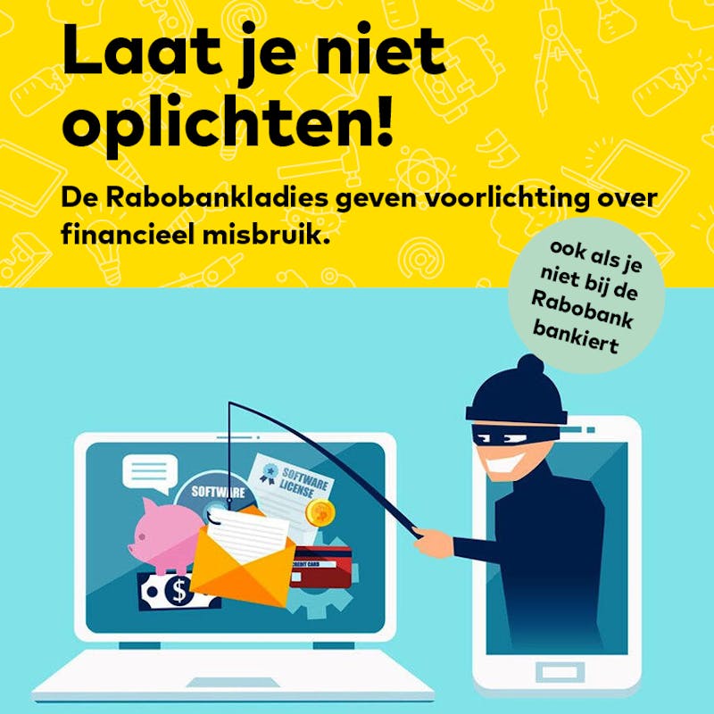 📆 dinsdag 1 november⏰ 10.30 - 11.00 uurLaat je niet oplichten!De Rabobank komt langs en geeft advies over mogelijk financieel misbruik. Hoe het te herkennen, wat je er zelf aan kan doen en vooral ook: wat te doen als het je is overkomen. Of je buurvrouw.