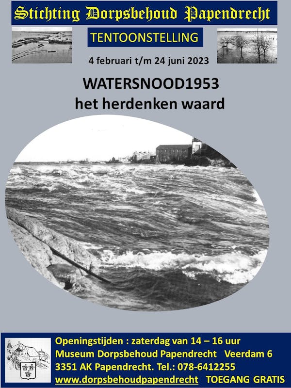 In Museum Dorpsbehoud is vanaf zaterdag 4 februari de tentoonstelling ‘Watersnood 1953, het herdenken waard’ te zien. Met kranten uit die periode, foto’s van o.a. het gehele getroffen gebied en de herstelwerkzaamheden.