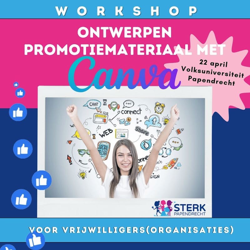 Ben jij een vrijwilliger in Papendrecht die zich bezighoudt met PR? Ben je een beginner in CANVA? Dan kan je deelnemen aan de ochtendworkshop, van 9:30 tot 12:30 uur, op zaterdag 22 april. Heb je al een beetje ervaring met CANVA? Dan kan je meedoen aan de middagworkshop, van 13.30 tot 16.30 uur.