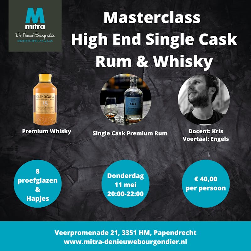 Op donderdag 11 mei komt de zelfverklaarde ”Rum Geek” en eigenaar van 1234 Spirits B.V. Kris von Stedingk een masterclass geven in High End Single Cask Rum. Verwacht een avond waarbij een expert met jaren ervaring prachtige exclusieve en limited editions rum gaat laten proeven. Waarom is Single Cask nou zo bijzonder en wat kan je allemaal proeven? Hoe werkt Cask Finishes? Waarom brengen distilleerderijen Limited Editions uit? Diverse vragen die Kris deze avond gaat beantwoorden door middel van uiteraard proefflessen.
