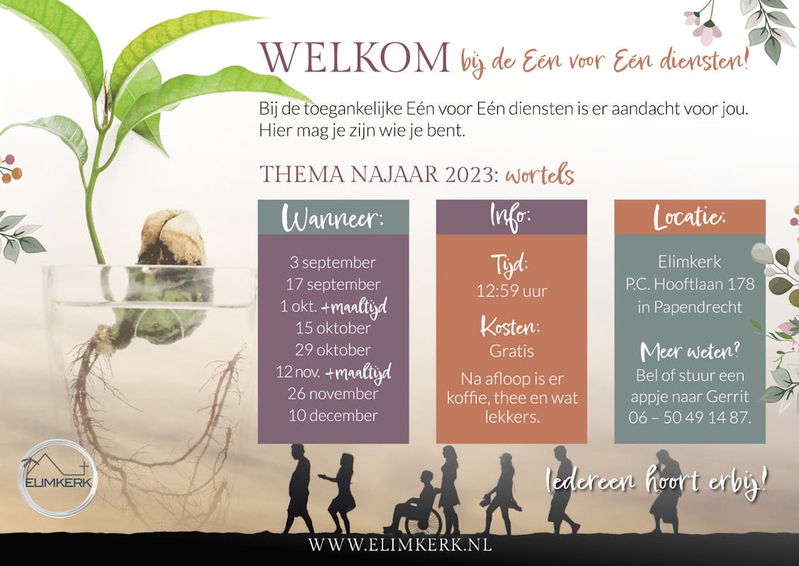 Kom dan eens naar onze ‘Eén voor één diensten’ in de Elimkerk!