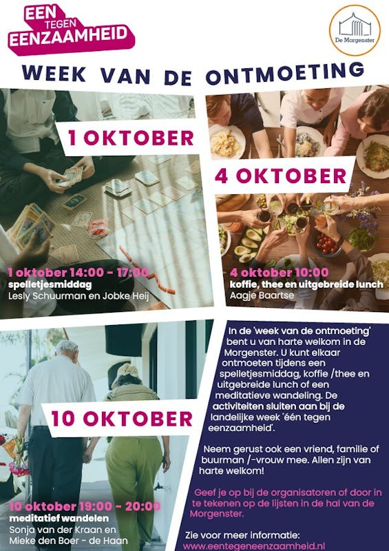 De Morgenster organiseert in deze periode onderstaande ontmoetingen: