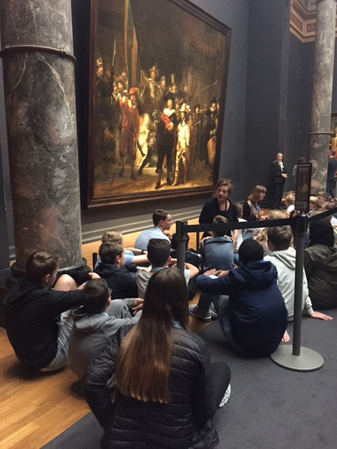 Eerst met de bus naar het Rijksmuseum, waar de leerlingen een korte rondleiding kregen en topstukken als het Melkmeisje van Vermeer en de Nachtwacht van Rembrandt van Rijn zagen. Daarna was er een programma in de Teekenschool.