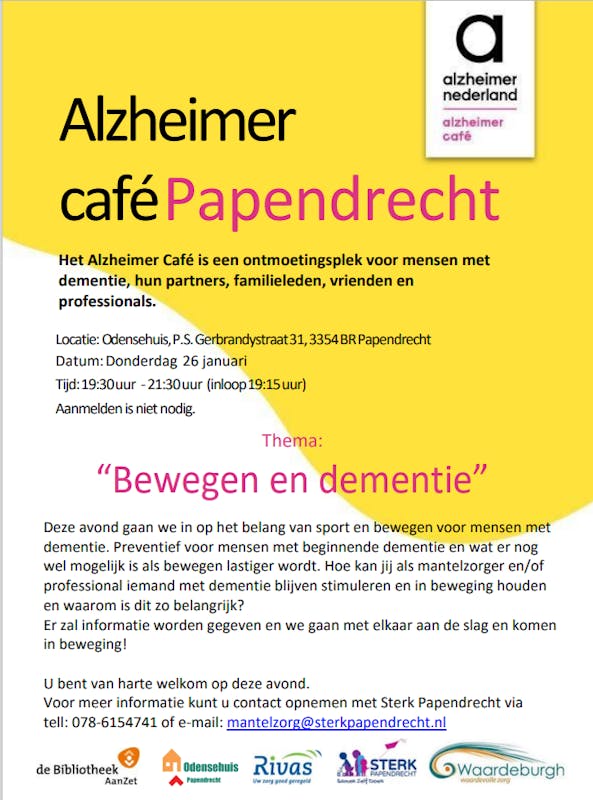 Voor meer informatie kunt u contact opnemen met Sterk Papendrecht via tell: 078-6154741 of e-mail: mantelzorg@sterkpapendrecht.n