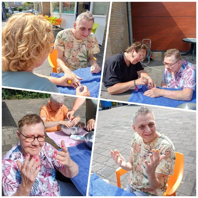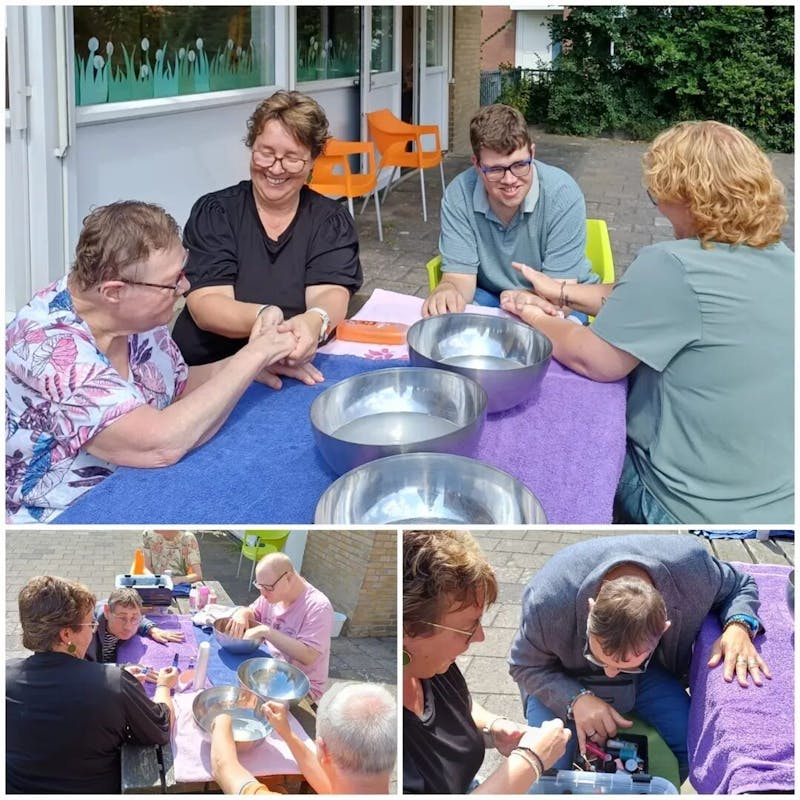 De behandeling bestond uit een handbadje met geurend sopje, nagelborstelbeurt, handmassage met lotion en voor de finishing touch mocht men ook nog een nagellak uitzoeken uit ons breed assortiment, met of zonder nagelstickers.