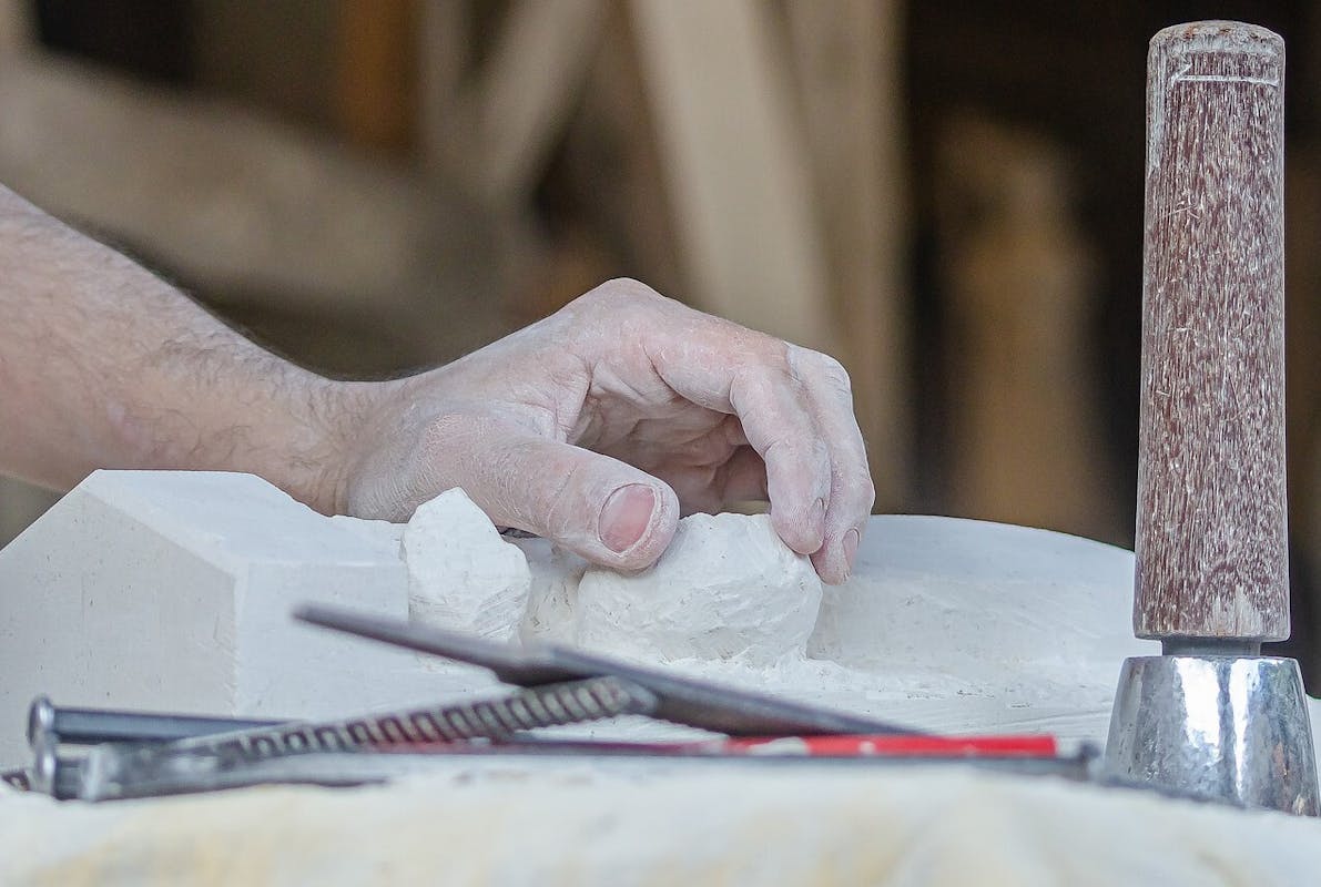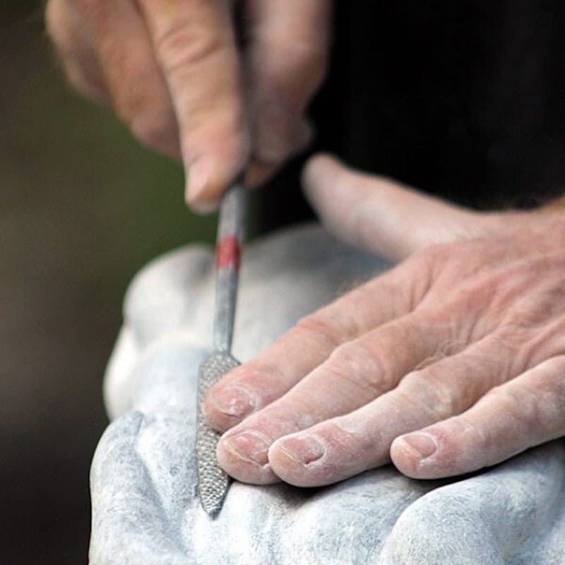 Het bewerken van de steen gebeurt met grote en kleine raspen. Als het beeld klaar is, wordt dit gepolijst met watervast schuurpapier en afgewerkt met was. Hierdoor krijgt het zijn uiteindelijke kleur en glans. De docent begeleidt ieder op zijn of haar niveau.