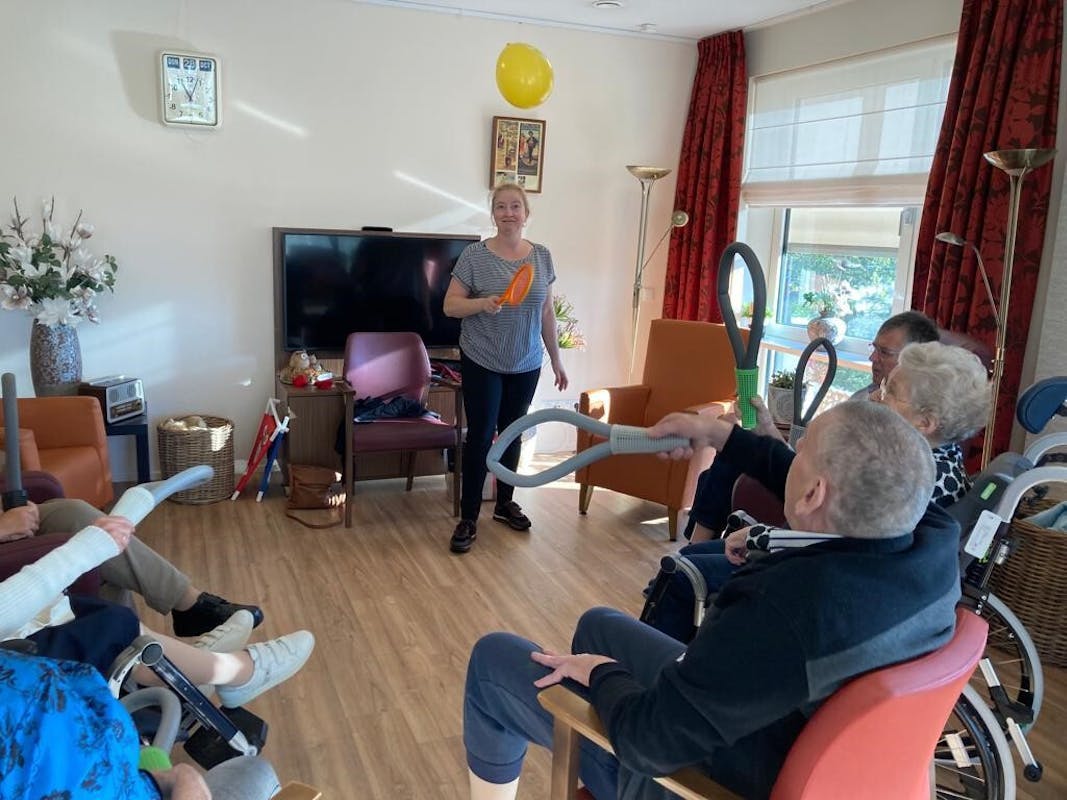Onze beweegcoach Rianne komt 2 keer in de week naar de verschillende woongroepen om een half uurtje te bewegen met elkaar.