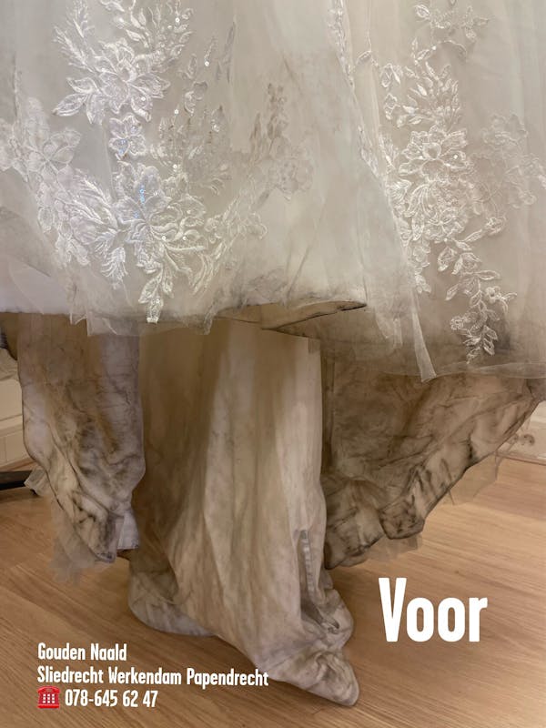 Wij kregen een super vuile bruidsjurk aangeboden om te stomen.🤦♀️