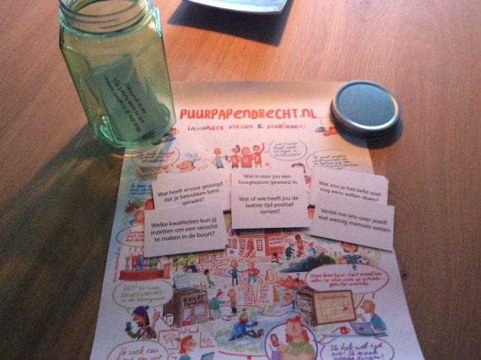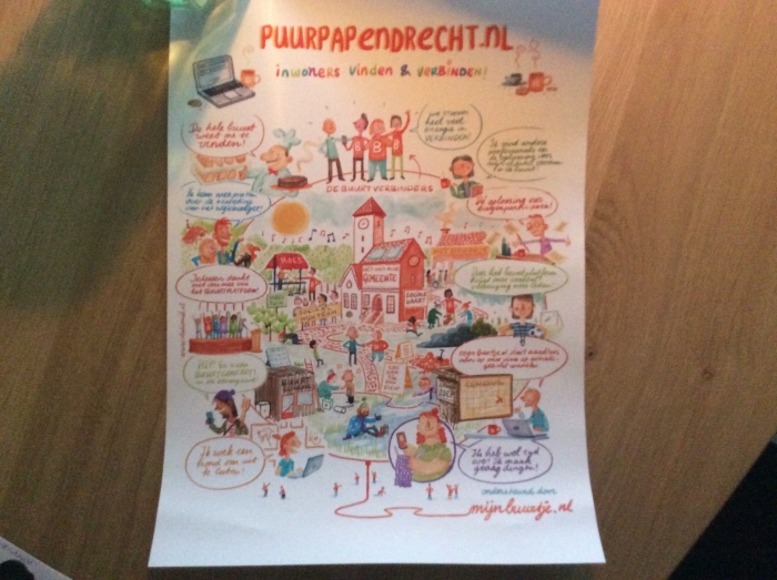 Het was een leuke en nuttige bijeenkomst met als afsluiting een lekkere lunch en een leuk aandenken (zie foto). Het blad helpt om in 1 opslag duidelijk te maken wat PuurPapendrecht betekent voor iedere bewoner/organisatie. De “kletspot” bevat kaartjes met tal van vragen die je kunt gebruiken bij bijeenkomsten of bij mensen die Betrokken willen worden bij PuurPapendrecht.
