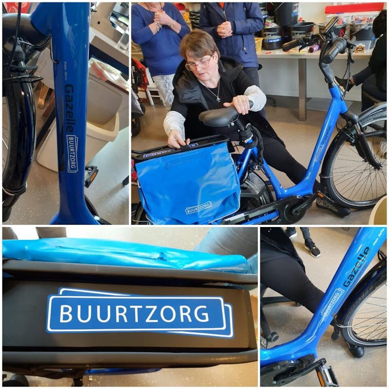 Vandaag de elektrische fiets van buurtzorg bestickerd met onze eigen gemaakte stickers. Super trots op het resultaat