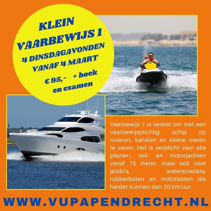 Vanaf dinsdagavond 4 maart kan je van 19.30 – 22.00 uur bij Volksuniversiteit Papendrecht terecht voor een 4 lessen tellende cursus Klein Vaarbewijs 1.