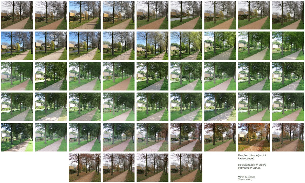 In 2020 heb ik (bijna) wekelijks, op dezelfde dag, een foto gemaakt in het Vondelpark in Papendrecht. De seizoenen zijn zo mooi te volgen.