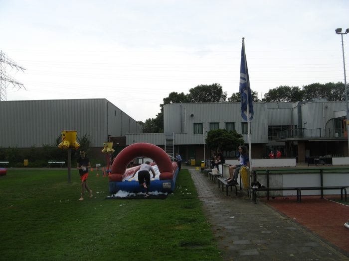 Er waren op het PKC-terrein vijf gigantische opblaasattracties zoals Tobbedansen, Buikglijden, Battle Run, Base Jump en Monkey Track, waar de leerlingen in konden klimmen, klauteren, kruipen, glijden en springen. Niet de prestatie of de snelheid telde, maar het plezier om met elkaar in de weer te zijn. Dat het tussendoor ook nog wat regende kon de leerlingen niet schelen: ze werden toch wel nat.