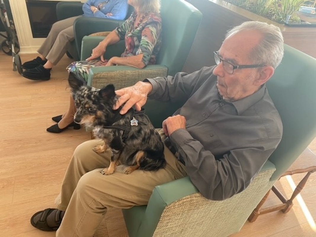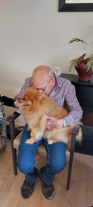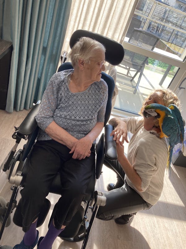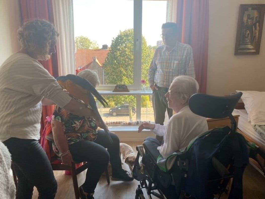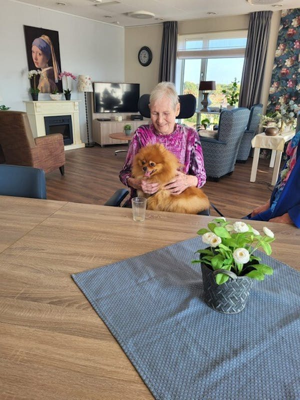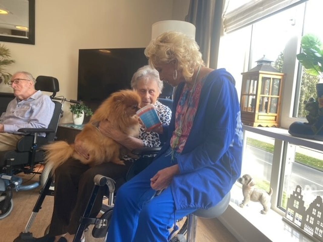 Vandaag op dierendag zijn er verschillende medewerkers en vrijwilligers langs geweest met hun trouwe huisdier! Wat was het mooi om te zien, het 1 op 1 contact tussen mens en dier.