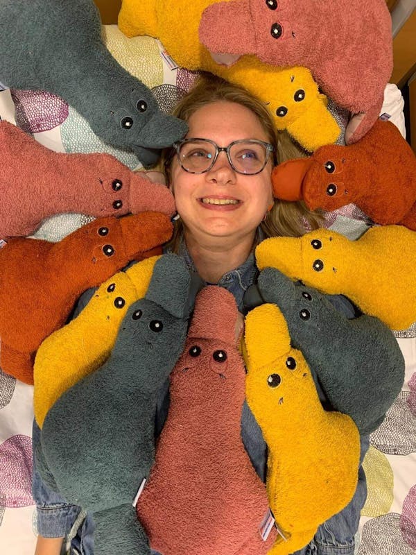 De eendenparade, al deze eenden zijn gemaakt door onze ster-naaister. We zetten haar graag in het zonnetje! ☀️