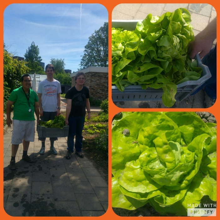 Groenderij: Vandaag is het eerste krat met 21 kroppen sla geoogst voor de Voedselbank in Papendrecht!! De sla is vanaf vandaag ook te koop in Fideel, de wijkwinkel. Komt u snel een krop sla uitzoeken? (Alle groente uit onze tuin is onbespoten en met veel liefde voor u gekweekt.)