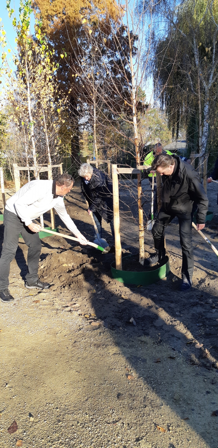 15 november 2018, bewoners en gemeente planten met elkaar 22 bomen op het eilandje op een prachtige herfstdag.