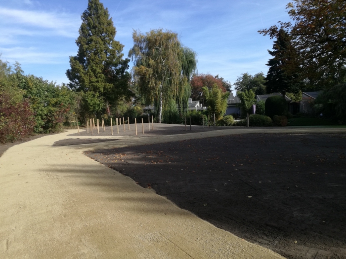 Medio oktober, de grondwerkzaamheden zijn afgerond. Op naar de volgende fase: bomen planten
