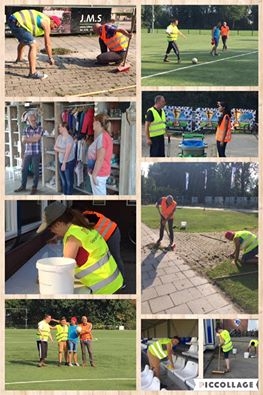 Op donderdagochtend wandelen we met zijn allen naar VV Drechtreek om samen met de vrijwilligers van de voetbal het terrein netjes te houden. We maken o.a. de tribune schoon, vegen de paden, onderhouden de reclame borden, tassenrekken en de duck-out.
