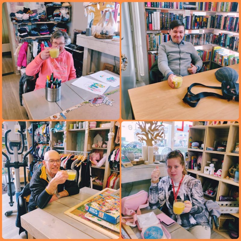 Als je als zo hard gewerkt heb de afgelopen tijd, verdien je een gezonde beloning. Samantha koos voor een fruitshake manderijn/banaan/appel en een beetje sinaasappelsap- we hebben er allemaal van genoten!