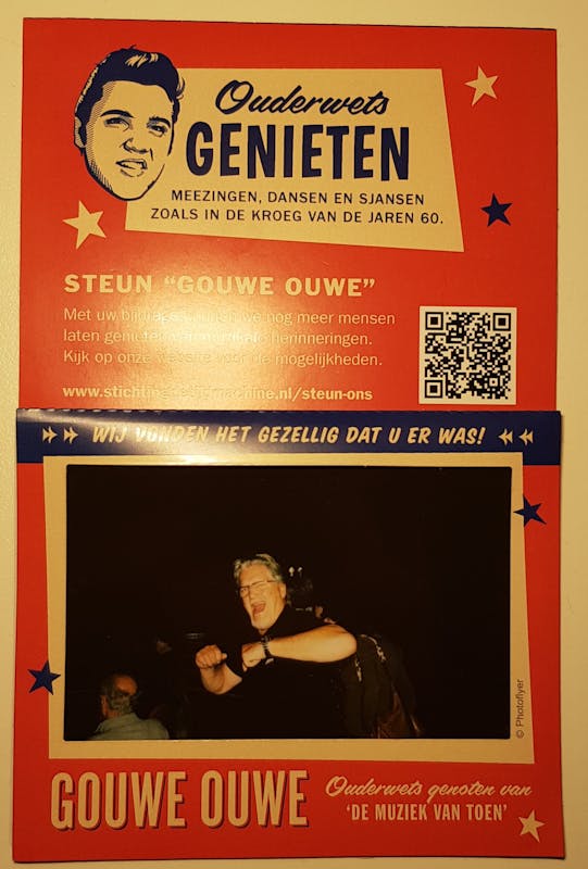 "In de tussentijd" was ik 25 oktober op een gezellige middag in Theater "De Willem" in Papendrecht, georganiseerd door de gemeente Papendrecht en "Stichting de Tijdmachine". (Stichting De Tijdmachine zet zich in voor ouderen, zelfstandig wonend of wonend in een woonzorgcentrum. Met een bewezen aanpak, aandacht en plezier dragen ze in projecten De Tijdmachine en Gouwe Ouwe bij aan een (structurele) verbetering van de kwaliteit van leven.) Er waren wel 300 bezoekers en de sfeer zat er goed in. Er werd mee gezongen met de live-band en gedanst. Ik heb rondgelopen en gesproken met bezoekers en hen meteen verteld over andere activiteiten in Papendrecht : "koffie met....." , de cursus "Alleenzaamheid" en het werk van Sterk Papendrecht. Natuurlijk heb ik zelf ook mee "geswingd". Waarschijnlijk word ik na het zien van onderstaande foto niet meer serieus genomen (maar ja, die kant heb ik ook !) Op 7 januari as. is er een vervolg. Wat een leuk initiatief ! Het was duidelijk dat iedereen (na Corona) toe was aan een ongedwongen feestje.
