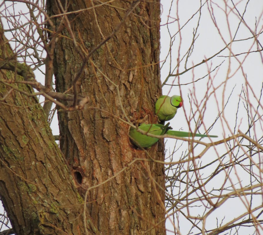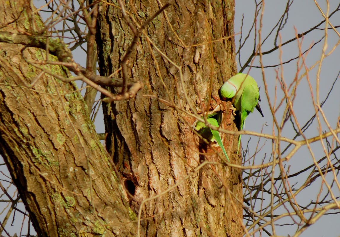 Vandaag, 9 januari 2022, zag ik deze grasparkieten hun nest al weer inspecteren. Nog een beetje vroeg maar met de krapte op de huizenmarkt kun je er niet vroeg genoeg bij zijn. In de buurt van het Slobbengors.