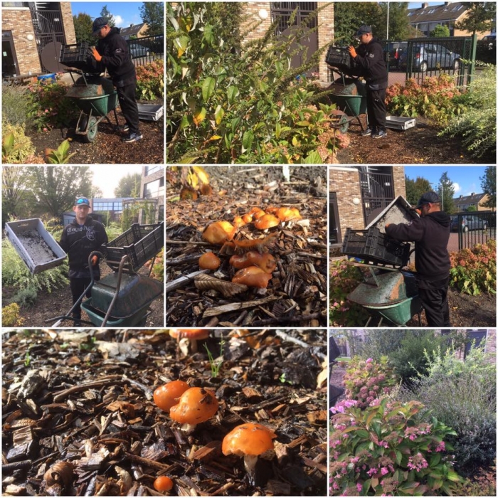 De mooie herfstkleuren komen al naar voren in de tuin. Frits is hard aan het werk met zijn eigen gemaakte compost. Hij demonstreerde zijn zelf gecreëerde compost verdeler.