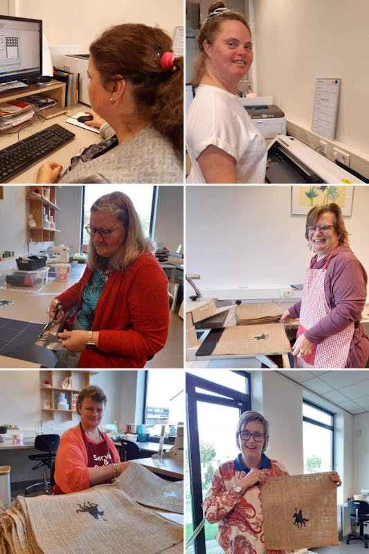 Wat een leuke opdracht hebben we gekregen! Komende weken zijn we zoet met het knippen, bedrukken en inpakken van 1.500 jute zakken!
