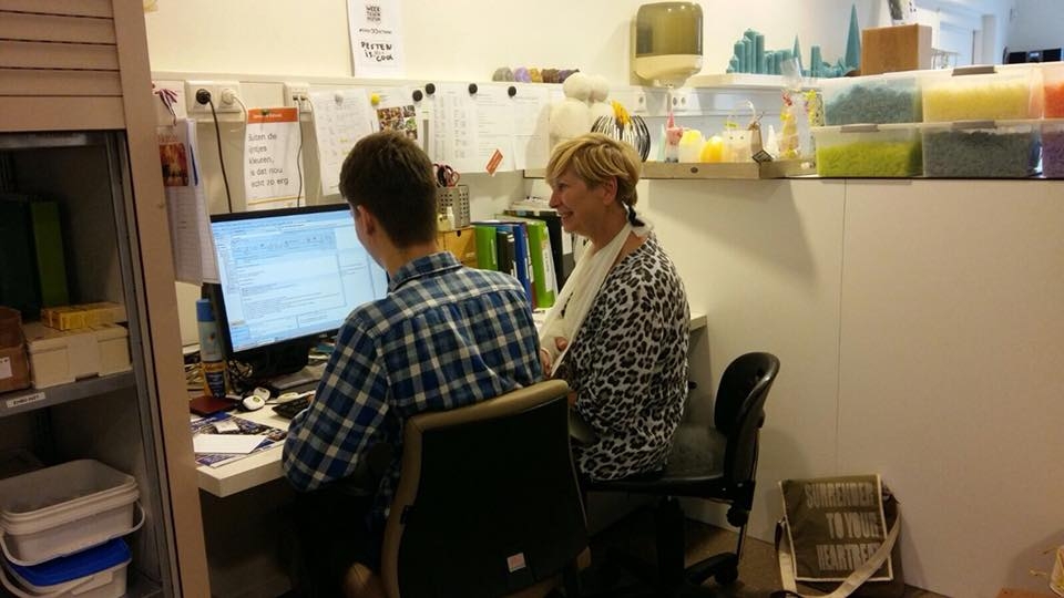 Ook als het even niet lukt om te typen ontstaan er leuke momenten waaruit nieuwe werkzaamheden ontstaan. Nick was vandaag zo behulpzaam en heeft het typewerk voor Rita gedaan!