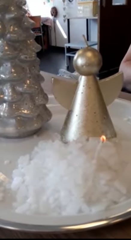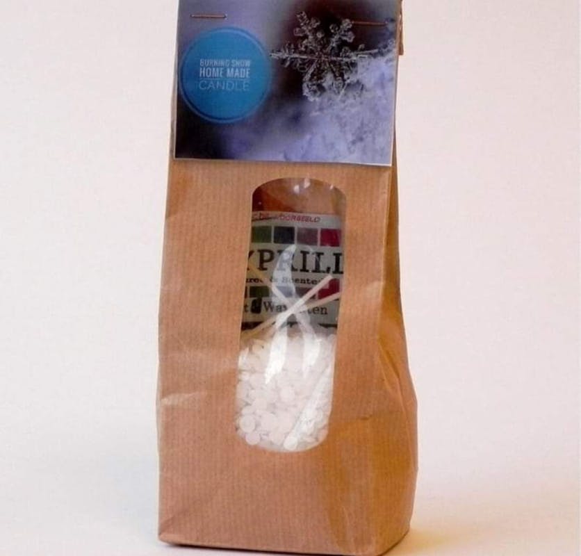 Die leuke canvas tas is gemaakt op de groep Van Katoen in Papendrecht en de illustratie erop gemaakt door iemand bij het Koetshuis. De kaars wordt gemaakt bij de kaarsenmakerij...