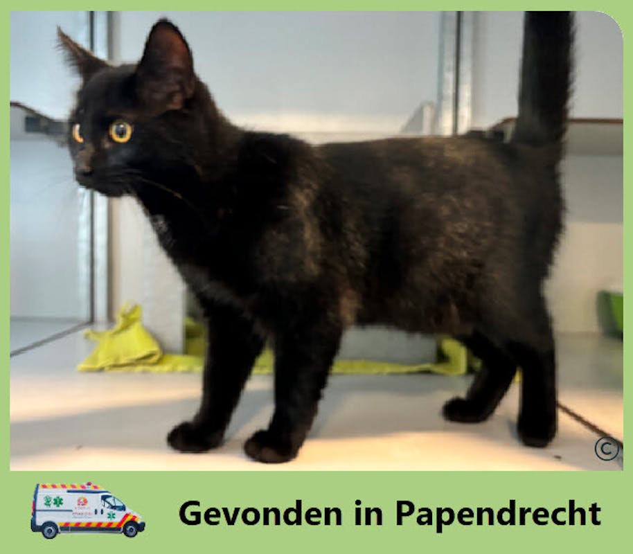 PAPENDRECHT, Josef Israelstraat Kat ek (v) gevonden, Is in slechte conditie. Naar dierenarts gebracht. Ongechipt, zwarte halsband met belmagneet, Dossier 6503 / 181125