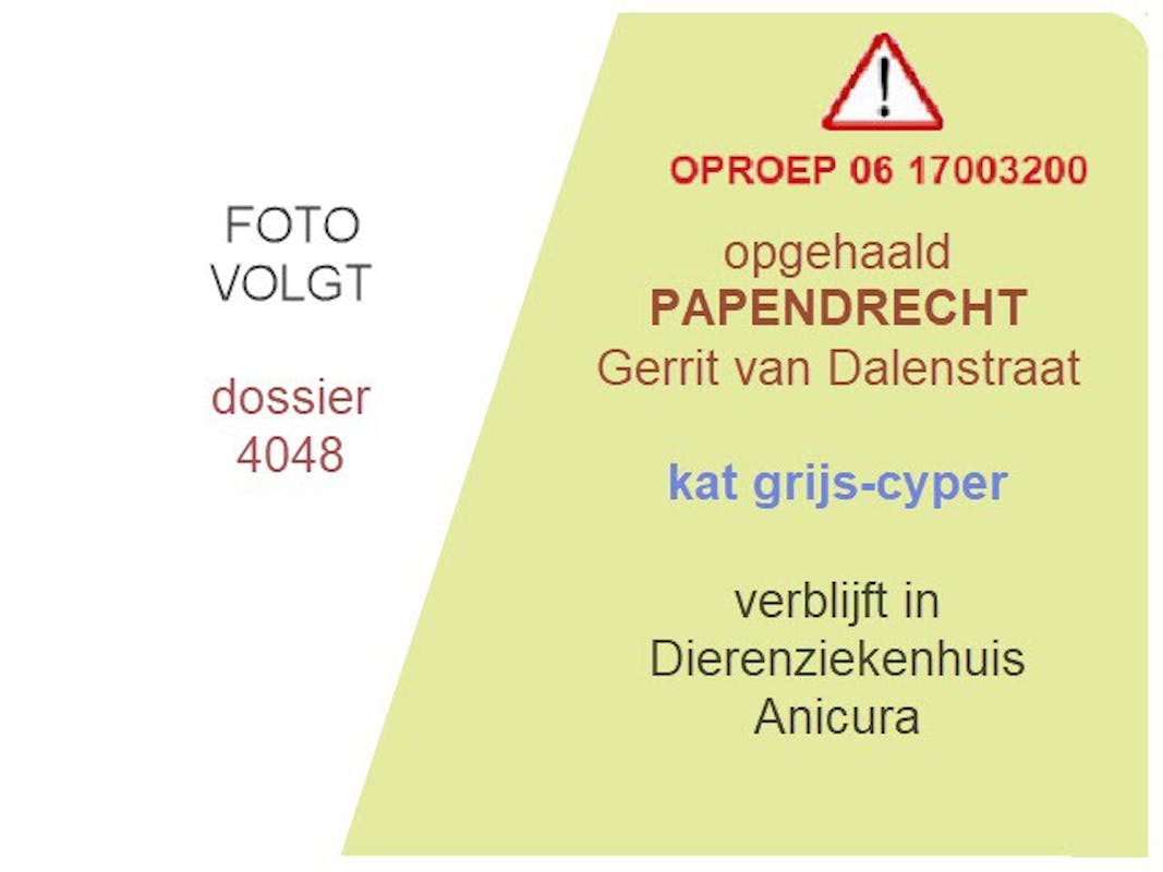 Kat gevonden in PAPENDRECHT, Gerrit van Dalenstraat