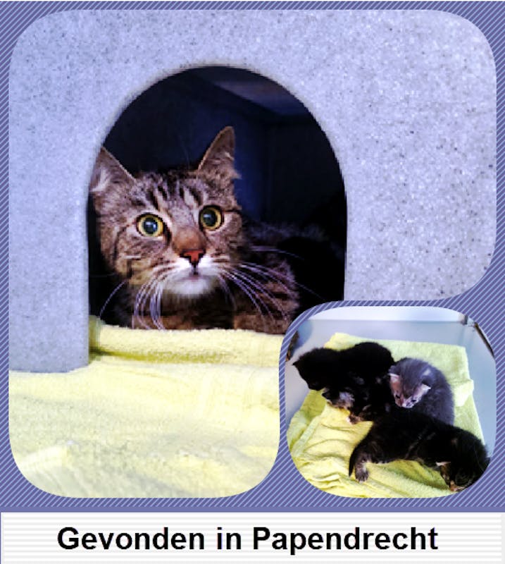 Met 4 kittens, plm 12 dagen oud. Ongechipt, geen halsband
