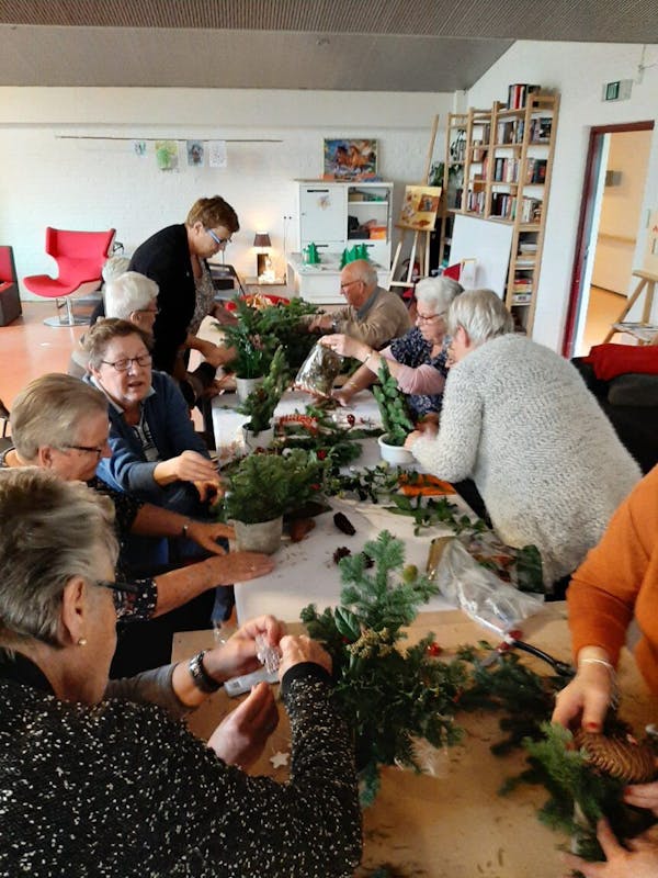 Bezoekers en mantelzorgers waren druk in de weer om een mooi tafelstuk te maken. Iedereen hielp elkaar en het was ontzettend gezellig. Het Odensehuis is met de eigen gemaakte kerststukken omgetoverd in een sfeervol inloophuis.