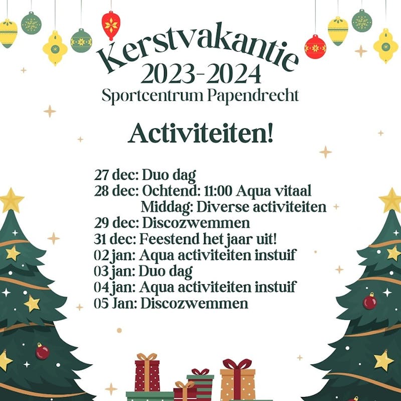 De kerstvakantie staat weer voor de deur! En dat betekent dat we weer verschillende activiteiten hebben in het sportcentrum!
