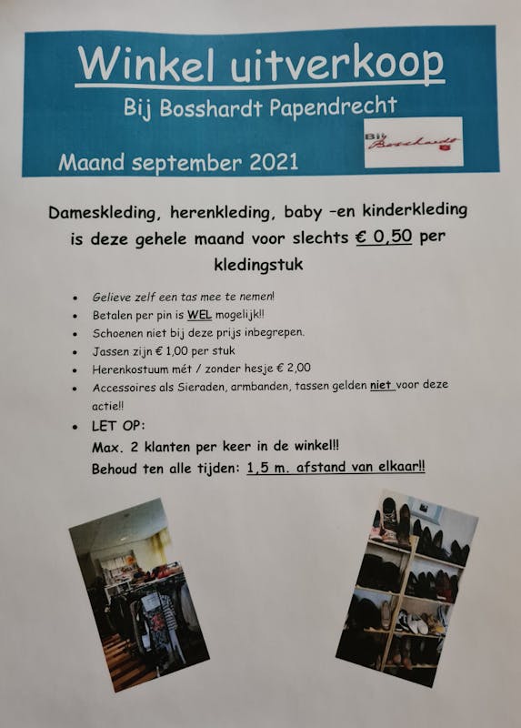 De hele maand september hebben we in Bij Bosshardt weer een kledinguitverkoop, zodat we plaats kunnen gaan maken voor de najaars -en winterkleding.