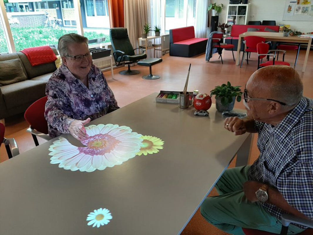 Om afstand te houden en toch plezier met elkaar te maken is de tovertafel echt super!