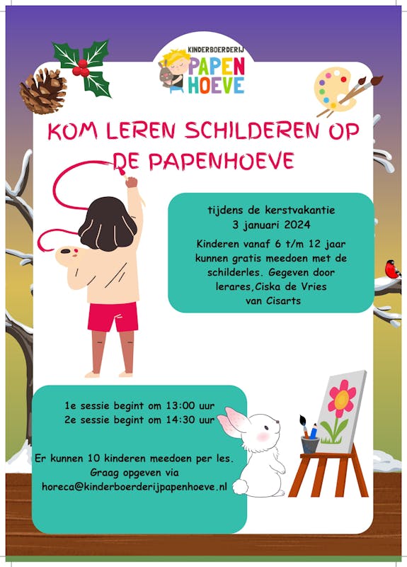 Kinderen van 6 t/m 12 jaar kunnen gratis meedoen met de schilderles gegeven door lerares Ciska de Vries van Cisart's collectief.