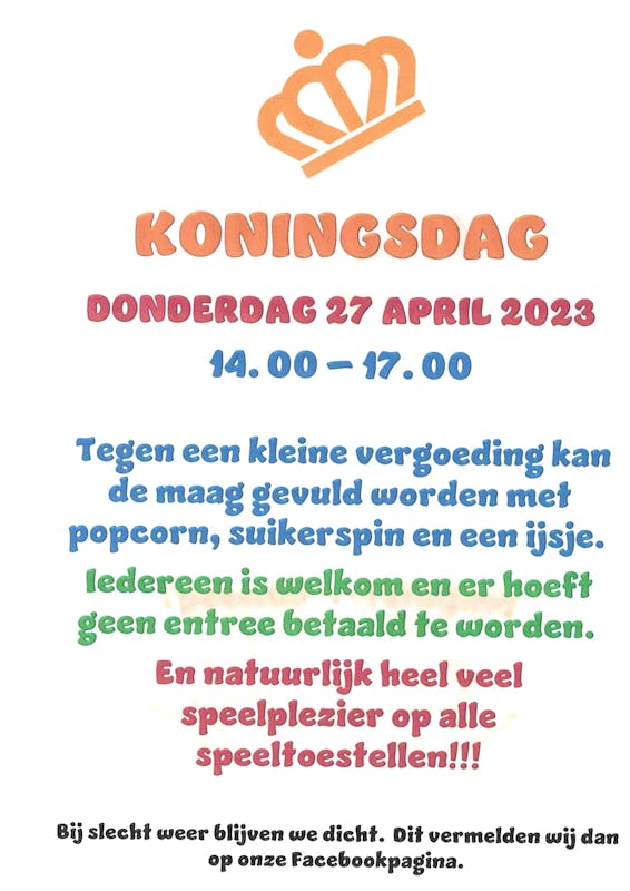 Koningsdag zijn wij geopend van 14.00 uur tot 17.00 uur.